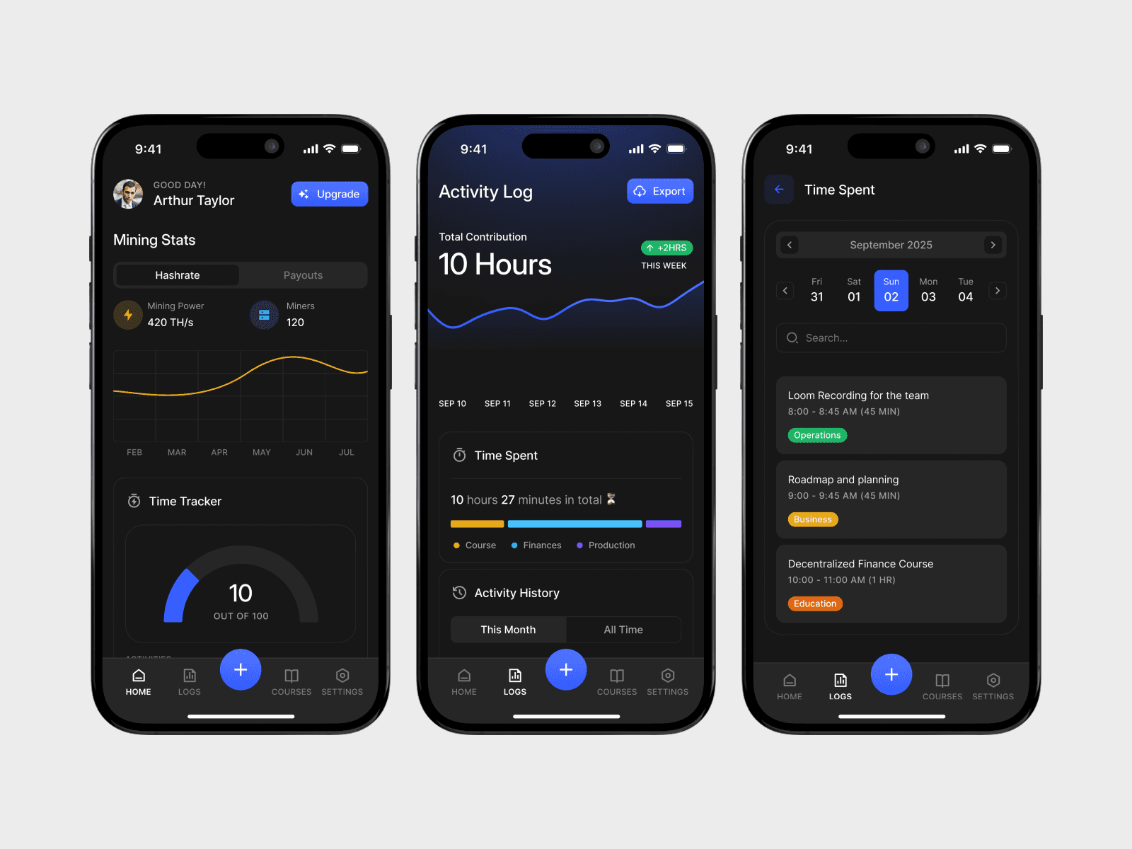 Mining stats are presented as read-only, focused on oversight. This makes routine monitoring easier and keeps complexity out of the MVP.